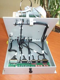 Vue intérieure et extérieure d'un banc de test